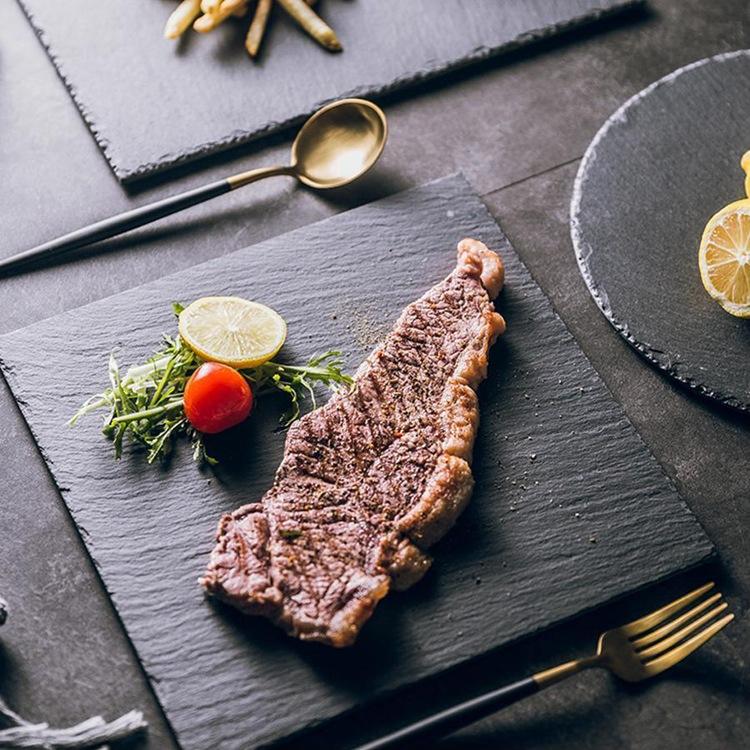 Ensemble de présentation de sushis japonais de luxe léger, plateau en ardoise noire, écologique, durable, carré, en matériau d'ardoise durable