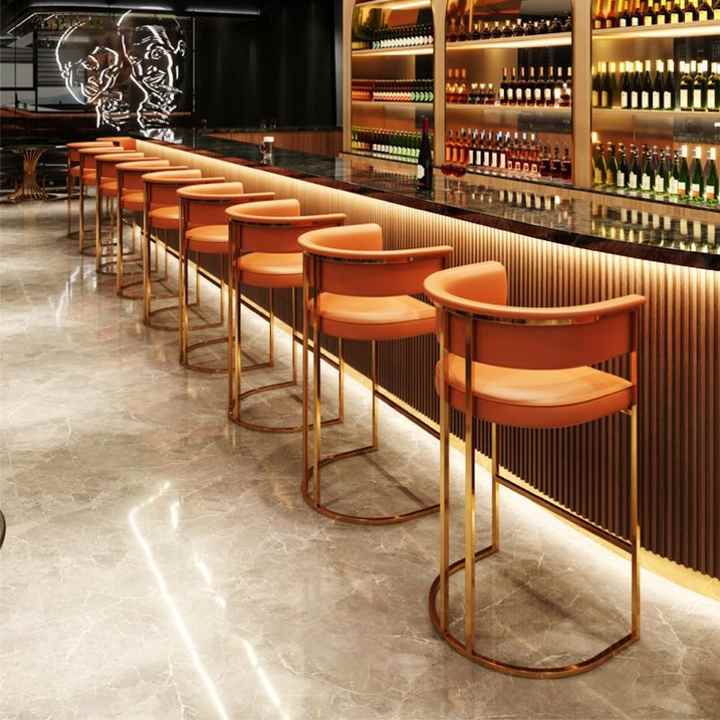 Chaise de comptoir haute en acier inoxydable légère et luxueuse en cuir et métal tabouret de bar moderne mobilier de bar tabouret de chaise de bar en métal pour restaurant