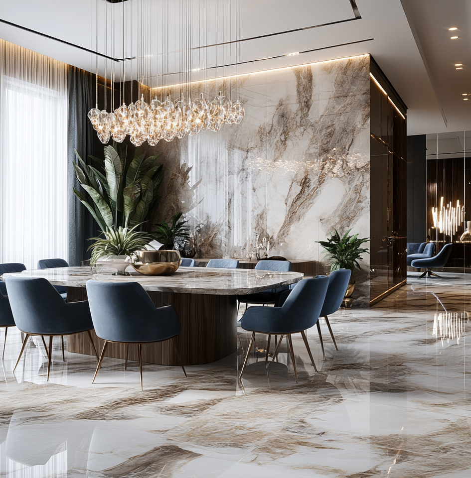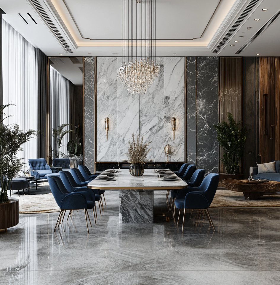Table en marbre de luxe léger, style minimaliste italien, pierre de luxe brésilienne, table de designer haut de gamme, table rectangulaire pour 8 personnes