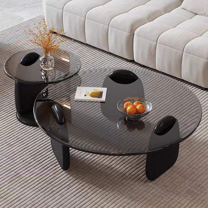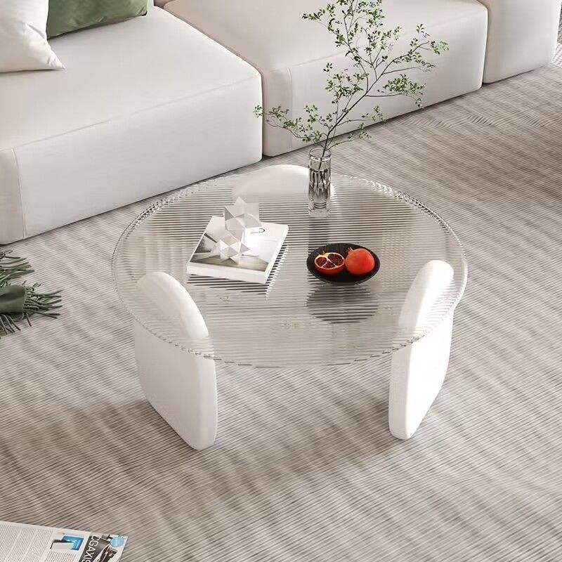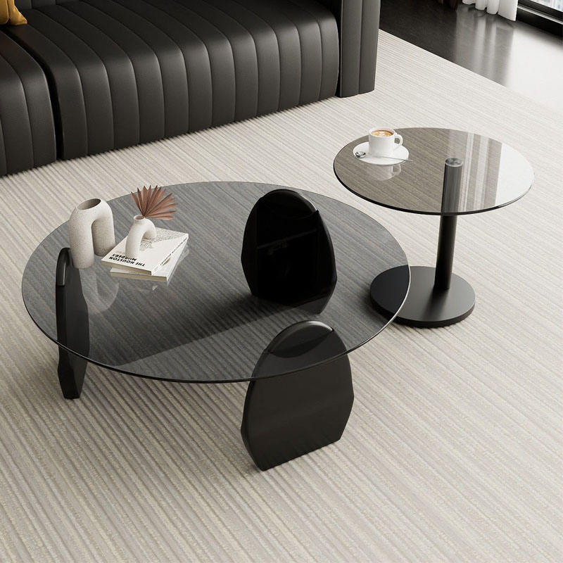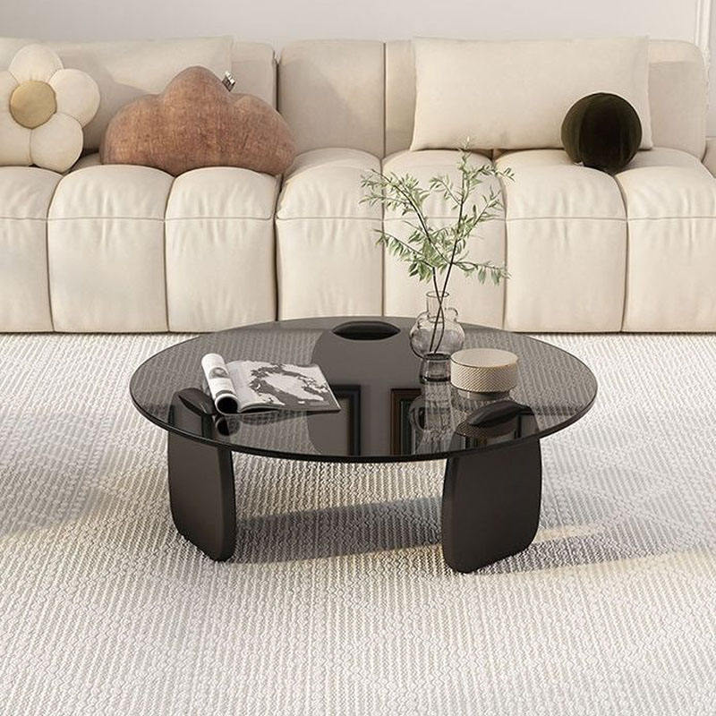 Table basse en verre moderne de luxe léger avec structure en bois, design minimaliste créatif, mobilier de salon léger