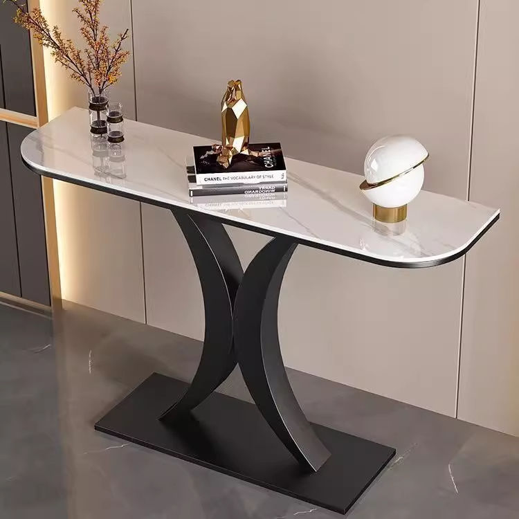 Console Moderne Simple de Luxe Léger, Table d'Entrée en Marbre Effet Roche pour Salon, Meuble Console Extrêmement Étroit