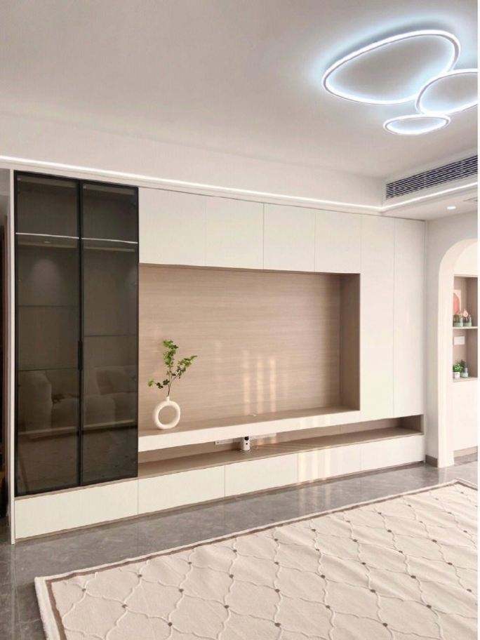Meuble TV de style moderne et luxueux avec portes en verre Meuble TV à plusieurs niveaux pour le salon