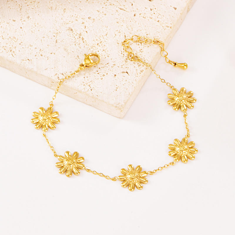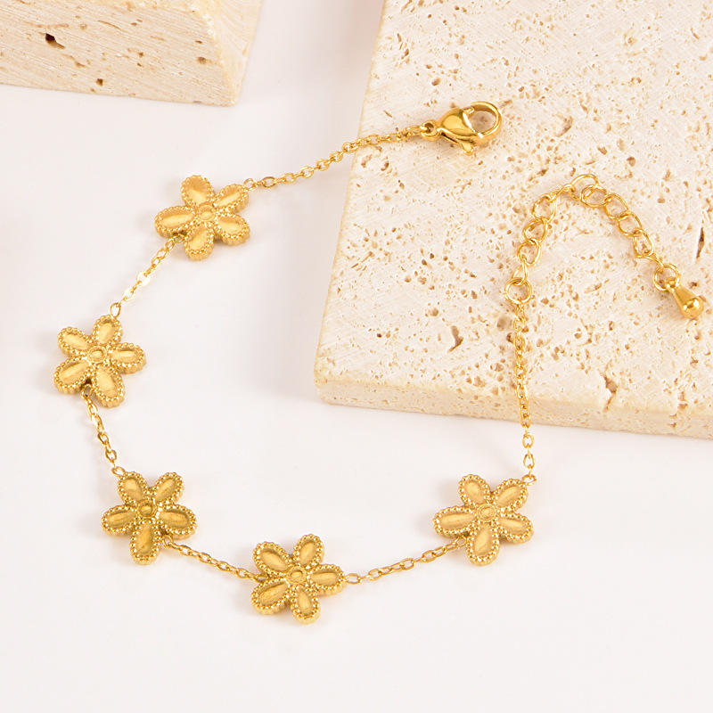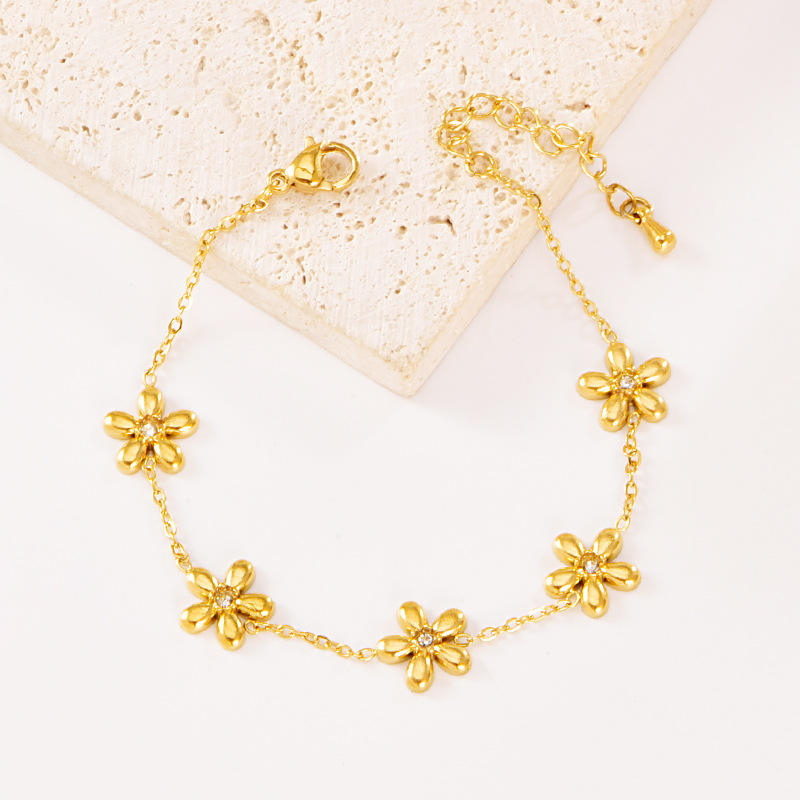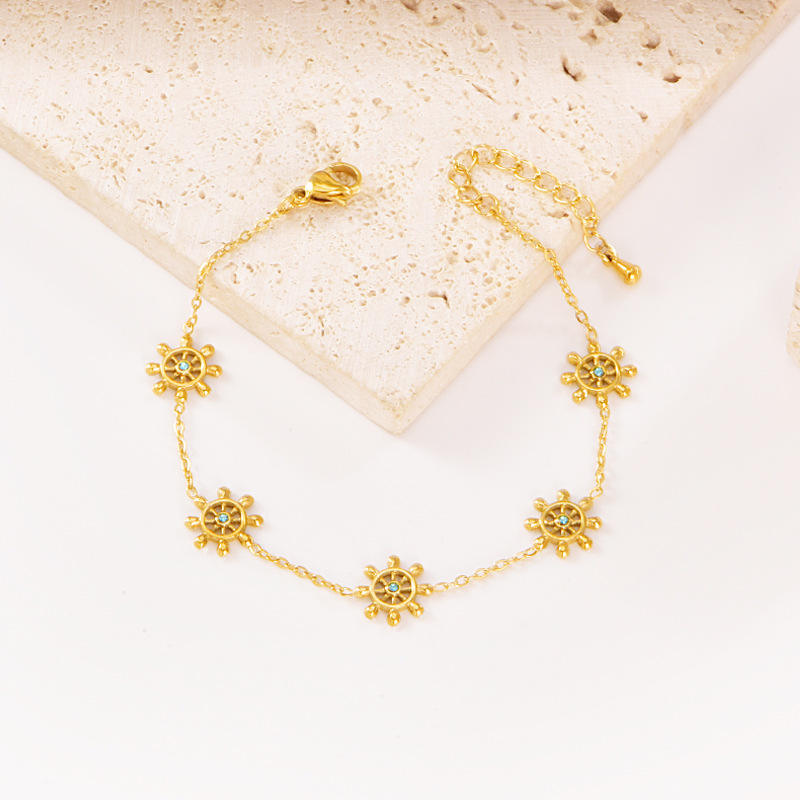 Bracelet fin en acier inoxydable plaqué or 18 carats, style luxe léger, diamant bleu, gouvernail de bateau, petite chrysanthème, pétale