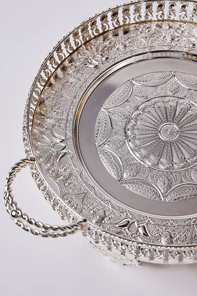 Light Luxury Turkish Small Silver Party Crystal Cake Candy Metal Bowl Decorative Dry Fruits Tray