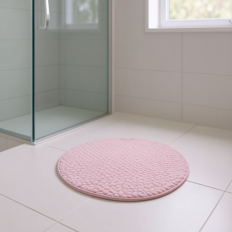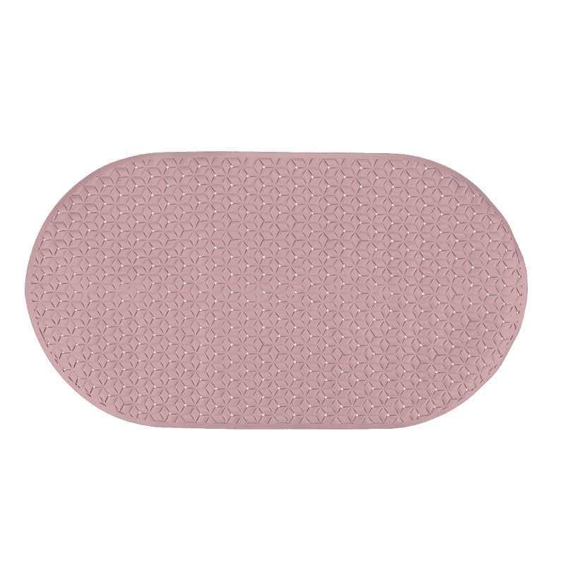 Panda Light Pink Woven Pattern Bath Mat 68x38 Anti-Slip PVC Bathroom Rug