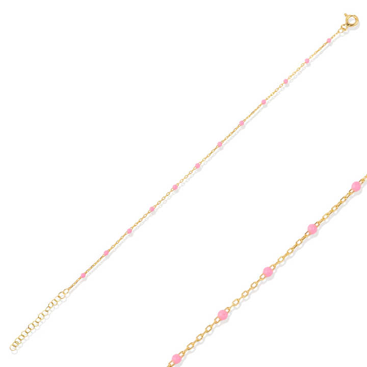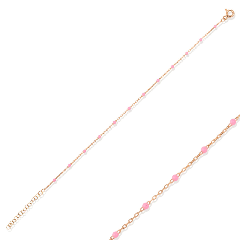 Bracelet chaîne en émail de couleur rose clair, design turc artisanal, vente en gros, bijoux en argent sterling 925
