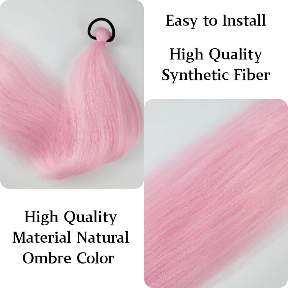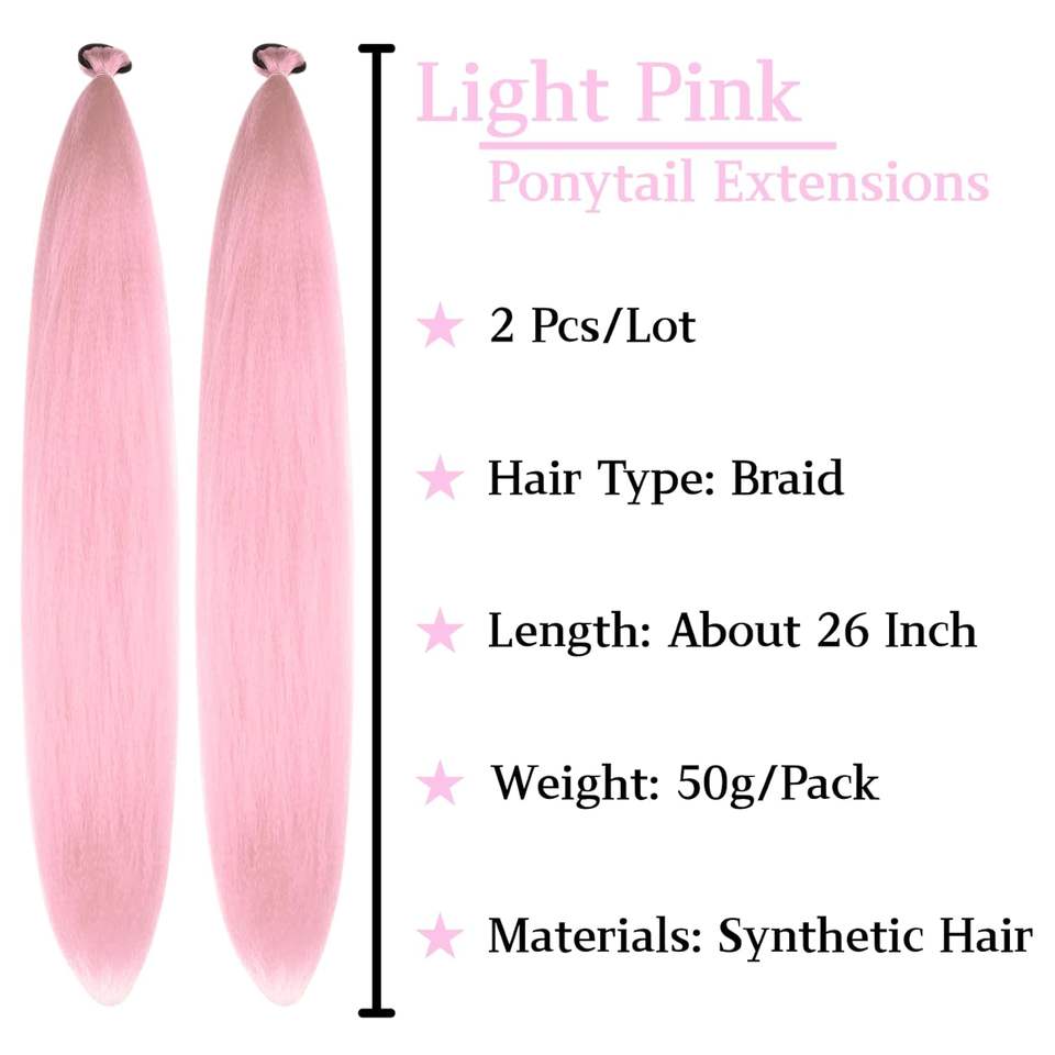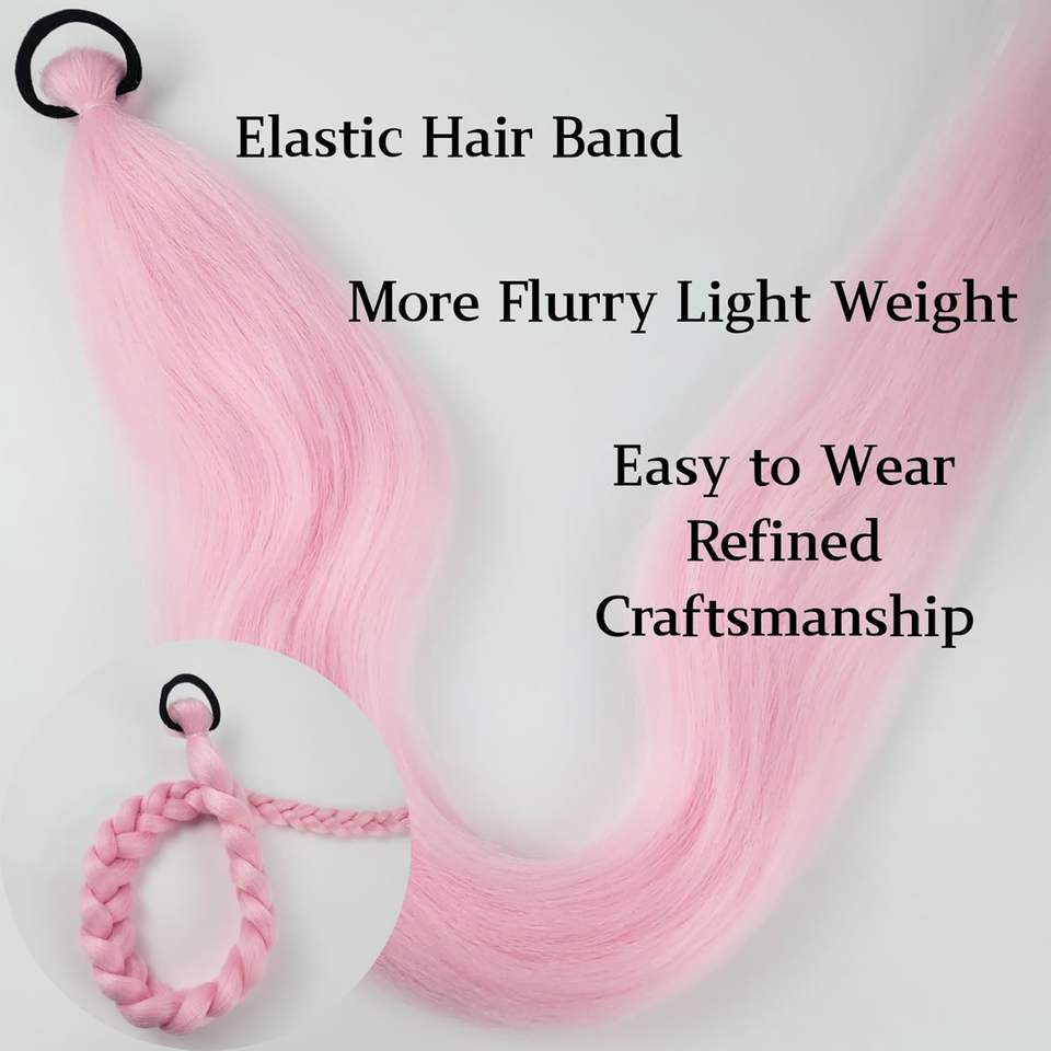 Extension de queue de cheval rose clair avec élastique, longue queue de cheval synthétique tressée, tresses de Noël, extension de cheveux colorée pour tresses