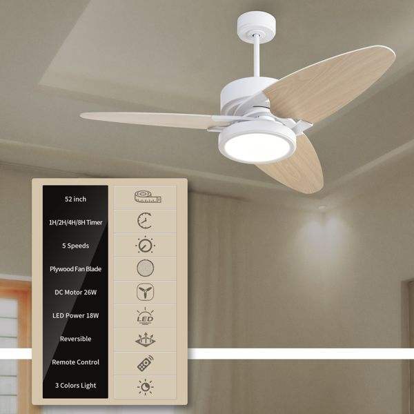 Ventilateur de plafond intelligent LED d'intérieur Light Pro de 52 pouces avec télécommande, blanc [Expédition le week-end non disponible]