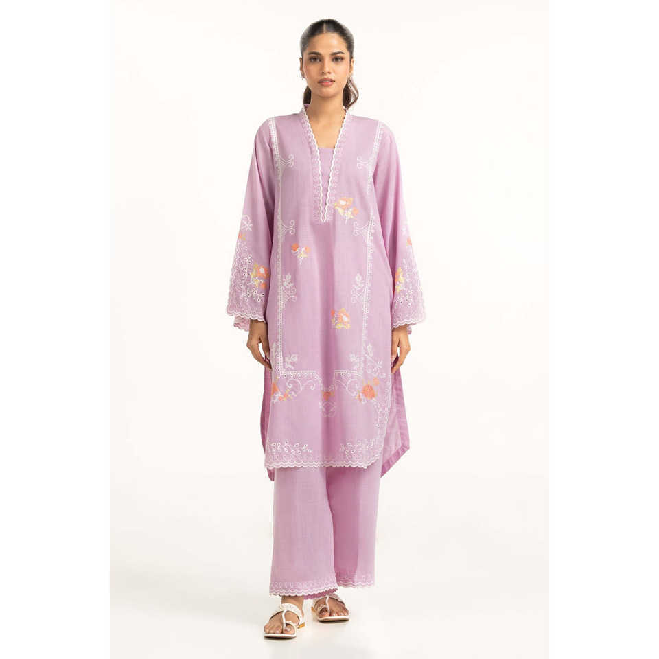 Ensemble coordonné bohème violet clair en tissu poly slub brodé pour femme, tenue 2 pièces printemps/été, tailles XS XXS XL