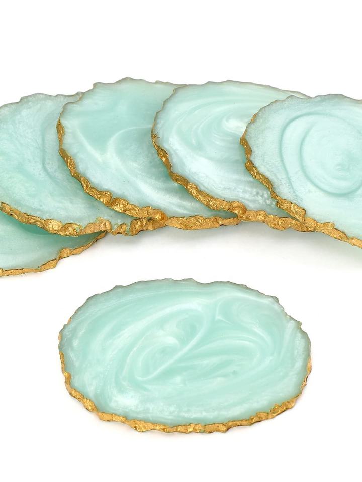 Ensemble de sous-verres en résine faits à la main de forme irrégulière bleu ciel clair pour la décoration de table moderne et la protection des verres