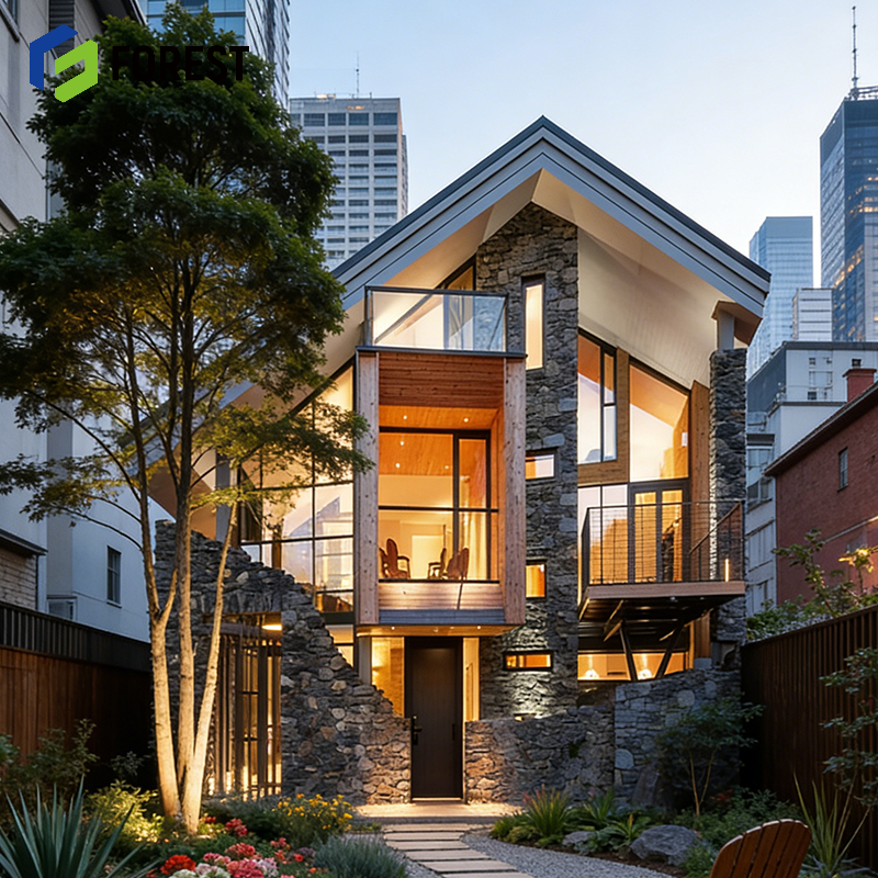 Villa préfabriquée moderne en structure légère en acier avec portes et fenêtres en alliage d'aluminium pour usage familial