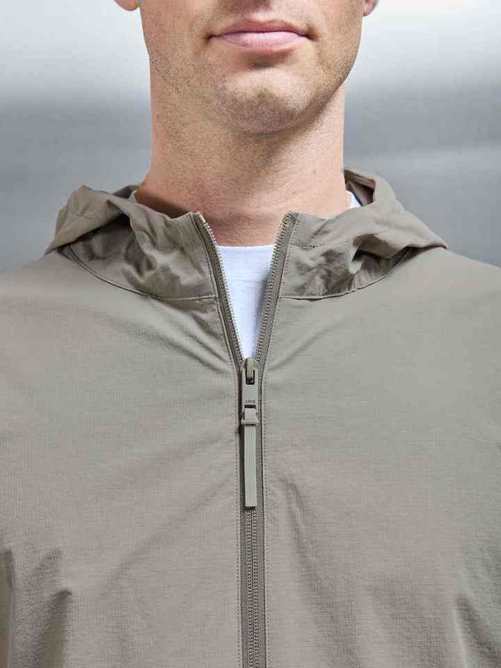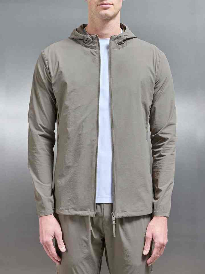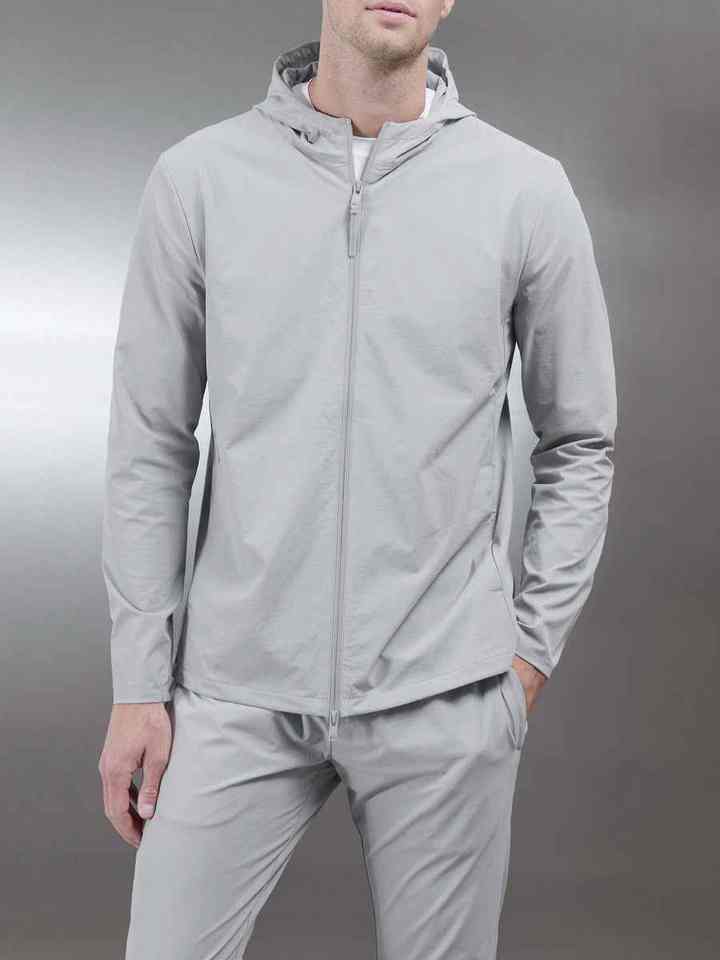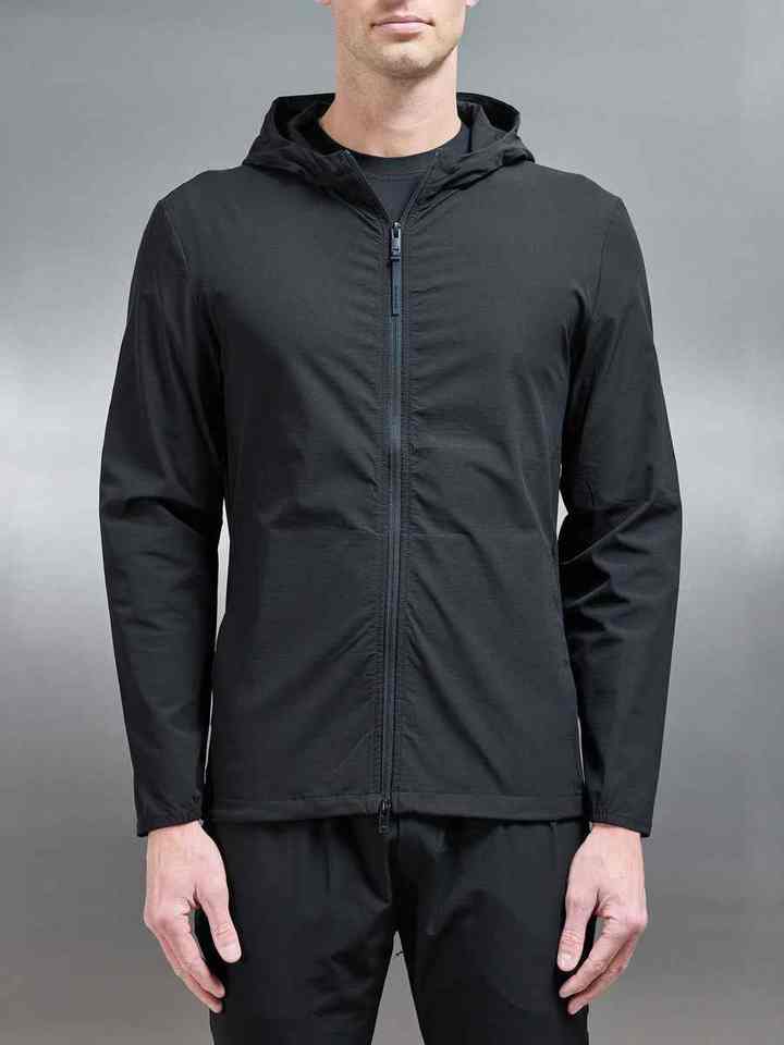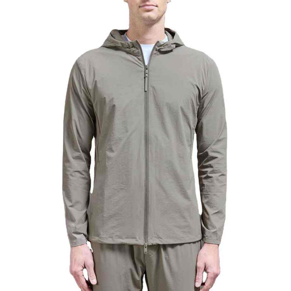 Coupe-vent technique à coupe ajustée et à capuche réglable, léger, extensible dans 4 directions, en nylon 87% 13% élasthanne pour hommes