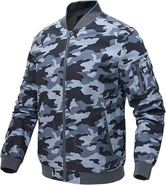 Blouson Bomber Léger en Toile Camouflage avec Fermeture Éclair – Qualité Supérieure, Meilleure Vente, Écologique, Anti-Bactérien, Satin Hivernal