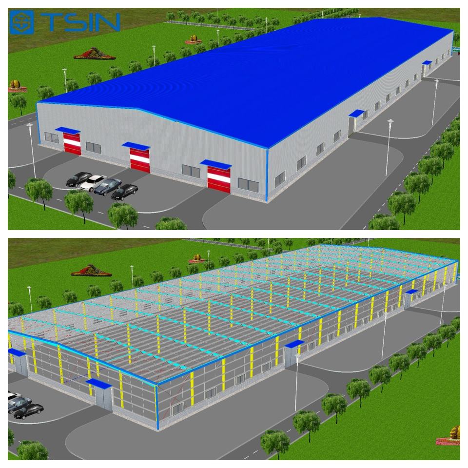Bâtiment préfabriqué de structure en acier de construction d'atelier léger et bon marché hangars métalliques personnalisés entrepôt préfabriqué