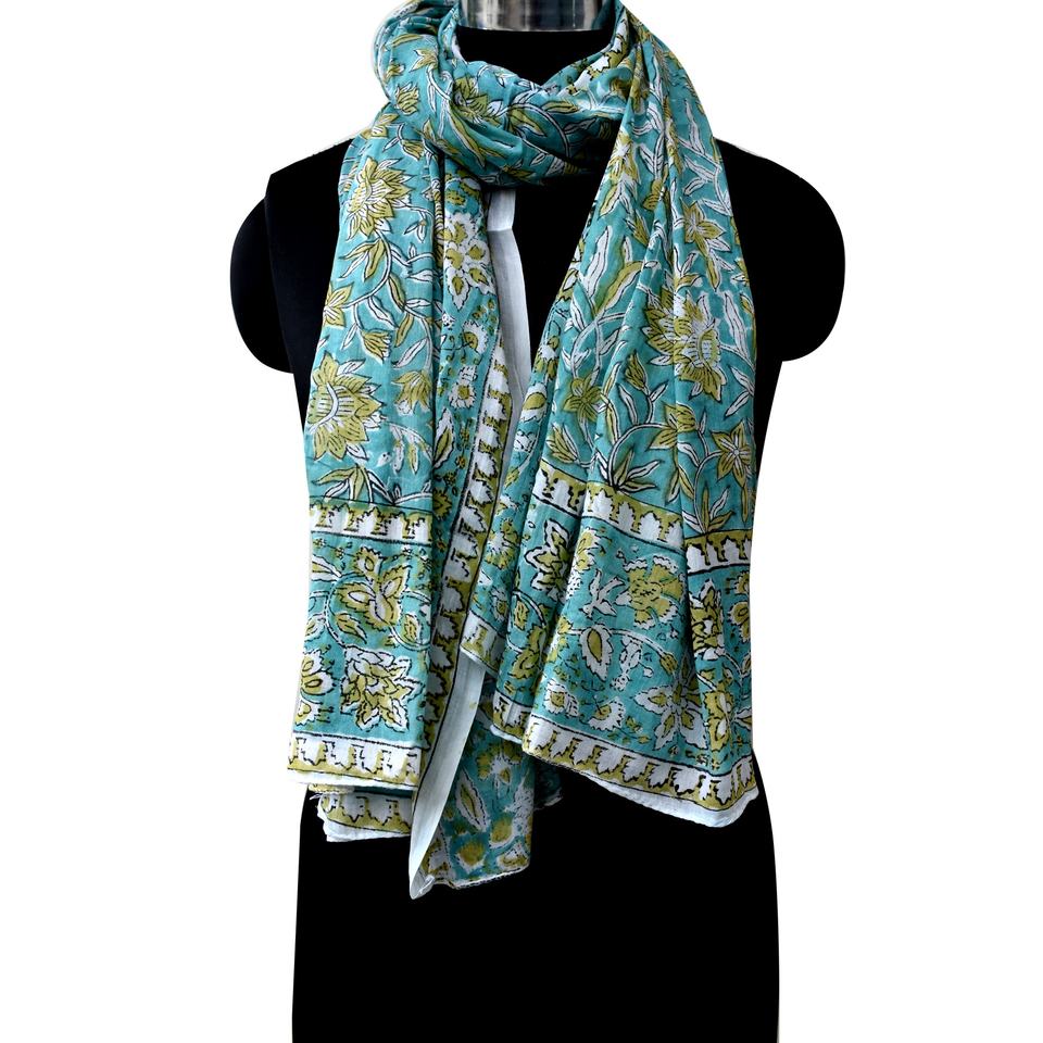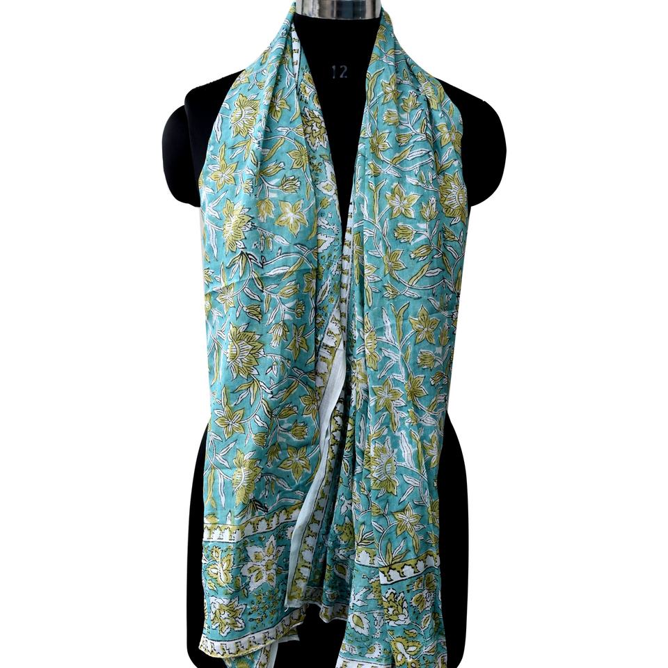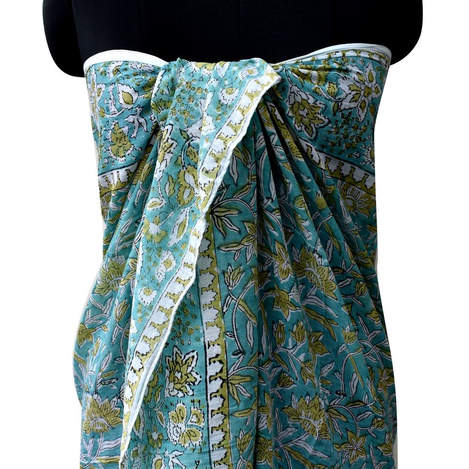 Écharpe en coton léger Sarong Sanganeri Block Print, couvertures de plage faites à la main, foulards femme multicolores paréo en gros