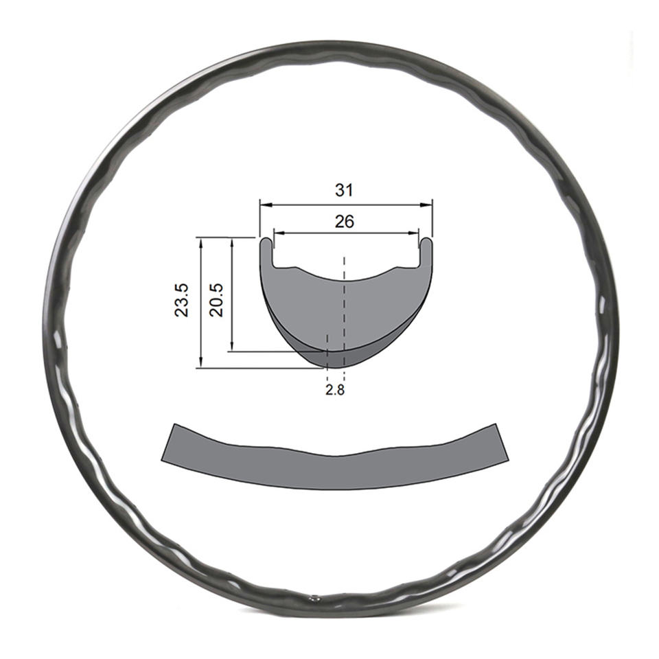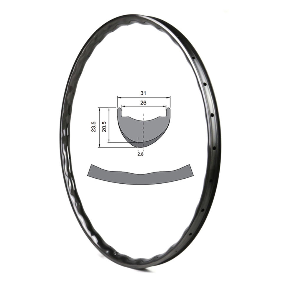 Jante légère en fibre de carbone Vague vague 305g ERD 596mm 29er Jante VTT Cross Country Jantes asymétriques Tubeless Vélo 700c