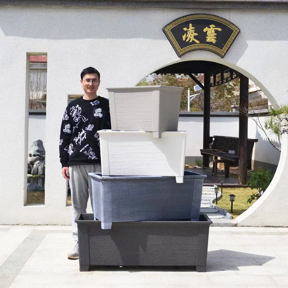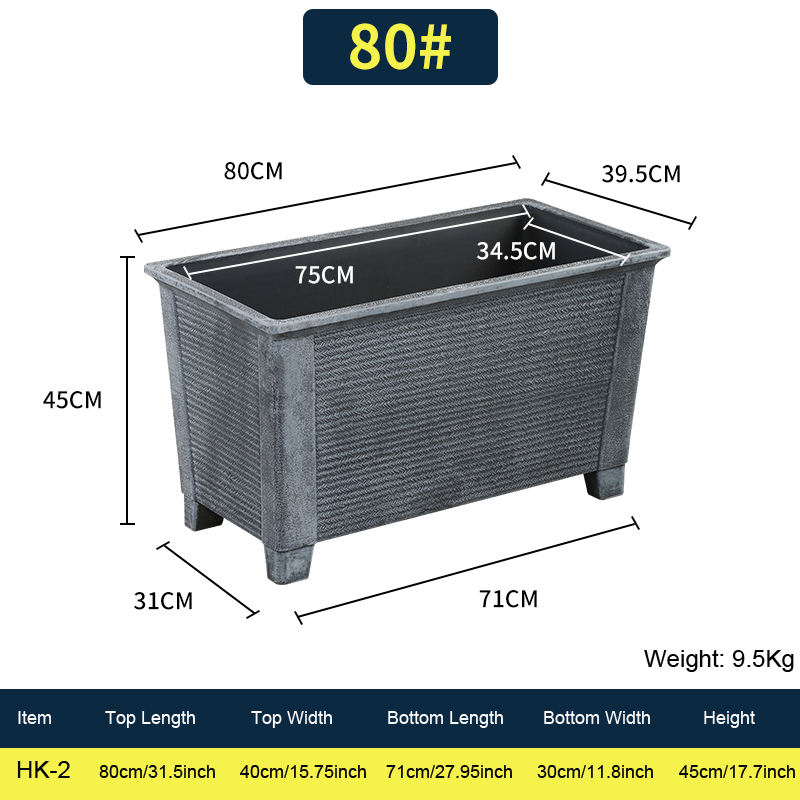 Grands pots rectangulaires légers pour plantes d'extérieur, 80 cm, bloc traversant, jardinière, 31,5 pouces, vente en gros, pot de fleurs en plastique imitation pierre