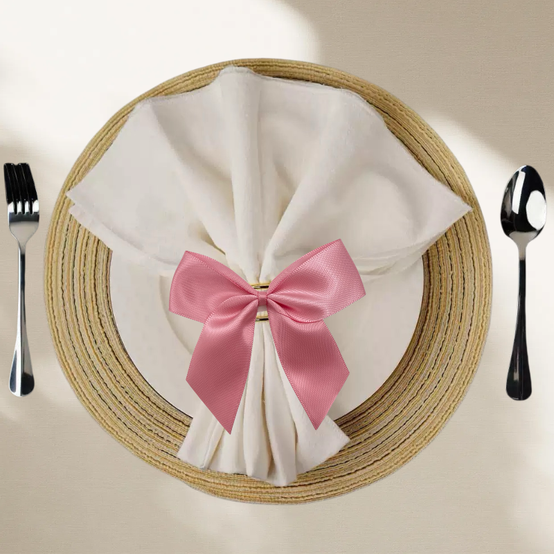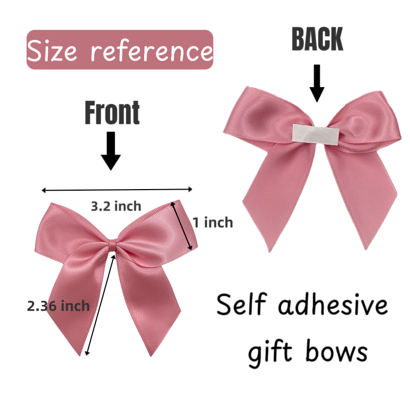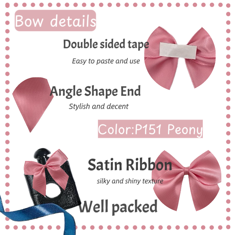 Noeuds de ruban de satin auto-adhésifs rose clair de 3 pouces pour la décoration de bouteille en verre de parfum Noeuds de pré-cravate pour l'emballage de cadeaux de Noël