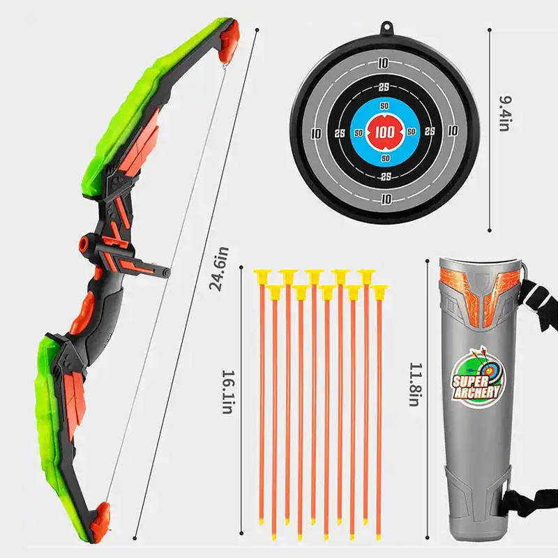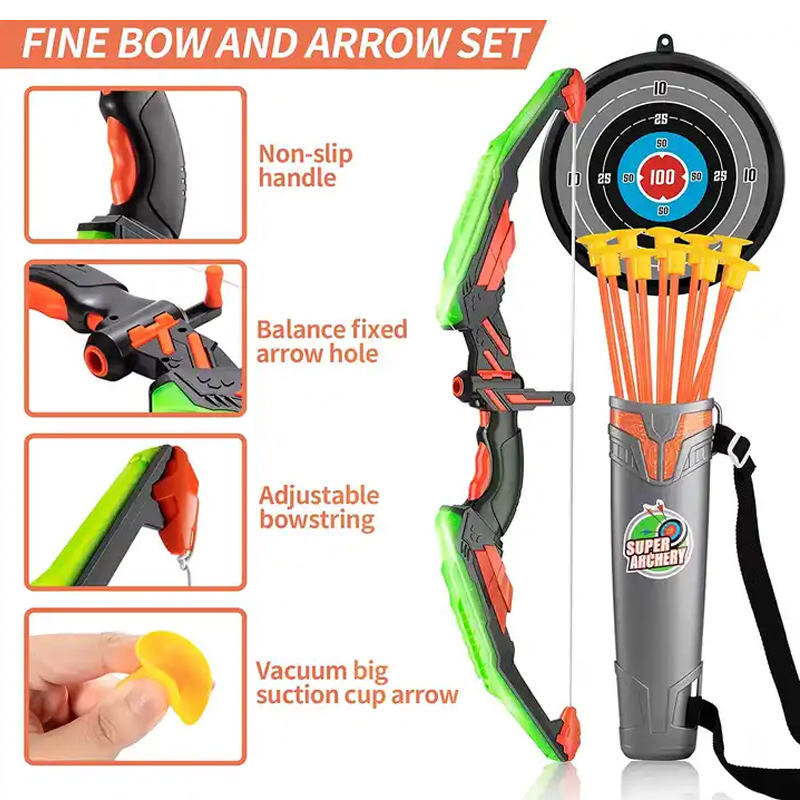 Ensemble arc et flèches lumineux avec 10 ventouses jeu de tir à l'arc cible jouets pour garçons