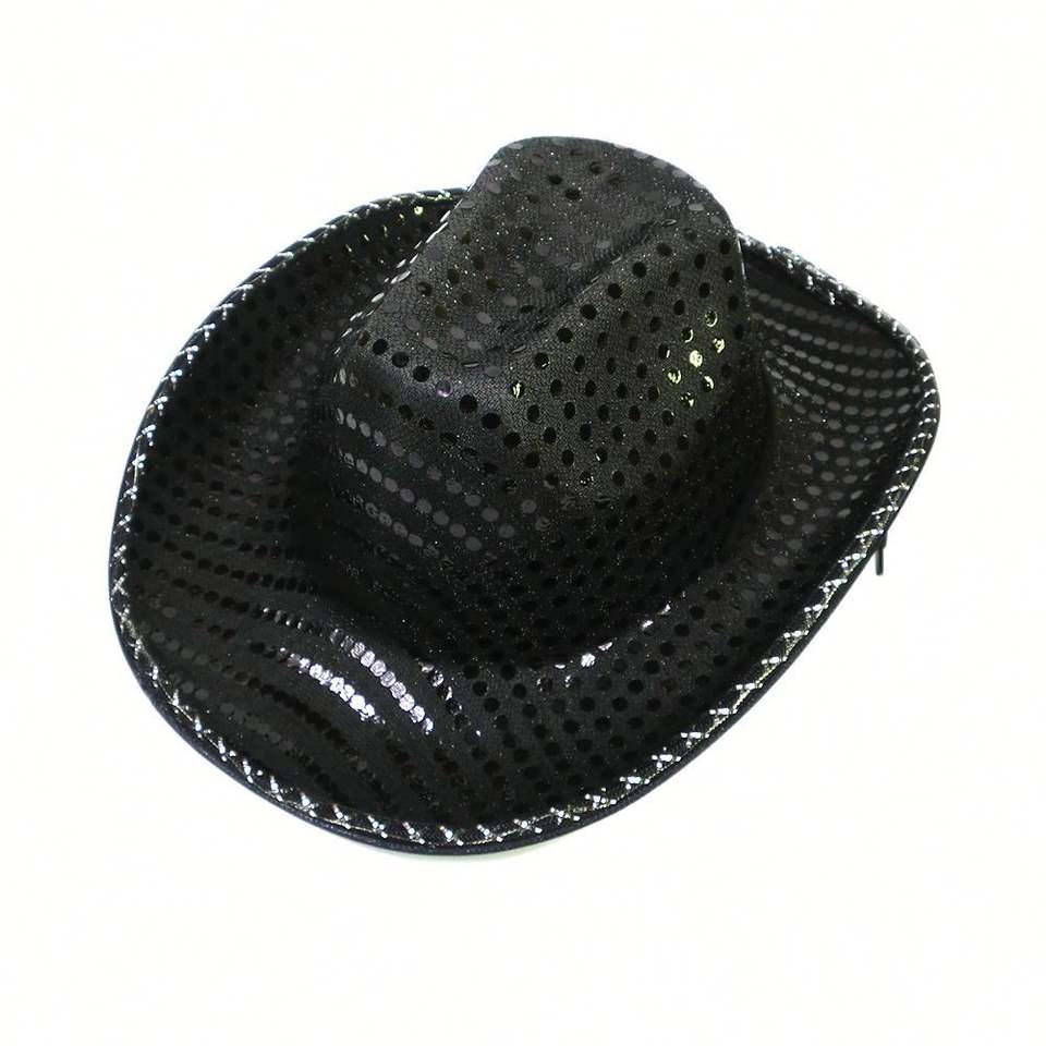 Chapeau de cowboy à paillettes lumineuses - Chapeau de festival à LED clignotantes pour cosplay, fête d'Halloween, Noël, accessoire de costume pour le Mardi Gras