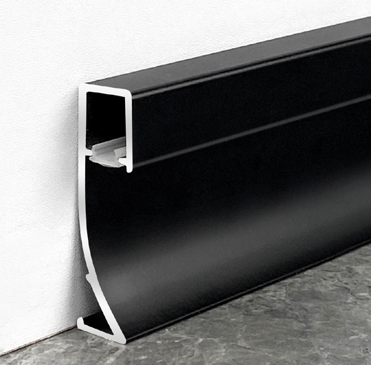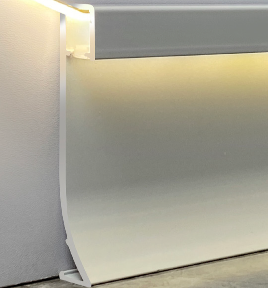 Plinthe en métal éclairée avec bande LED, montage en surface, aluminium, acier inoxydable, plinthe avec rainure lumineuse