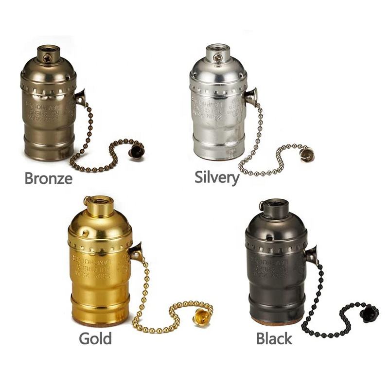 Abat-jour en Aluminium pour plafonnier, accessoires d'éclairage de voiture, support de lampe E26 en laiton antique, chaîne de traction, support d'ampoule E27, douille de lumière