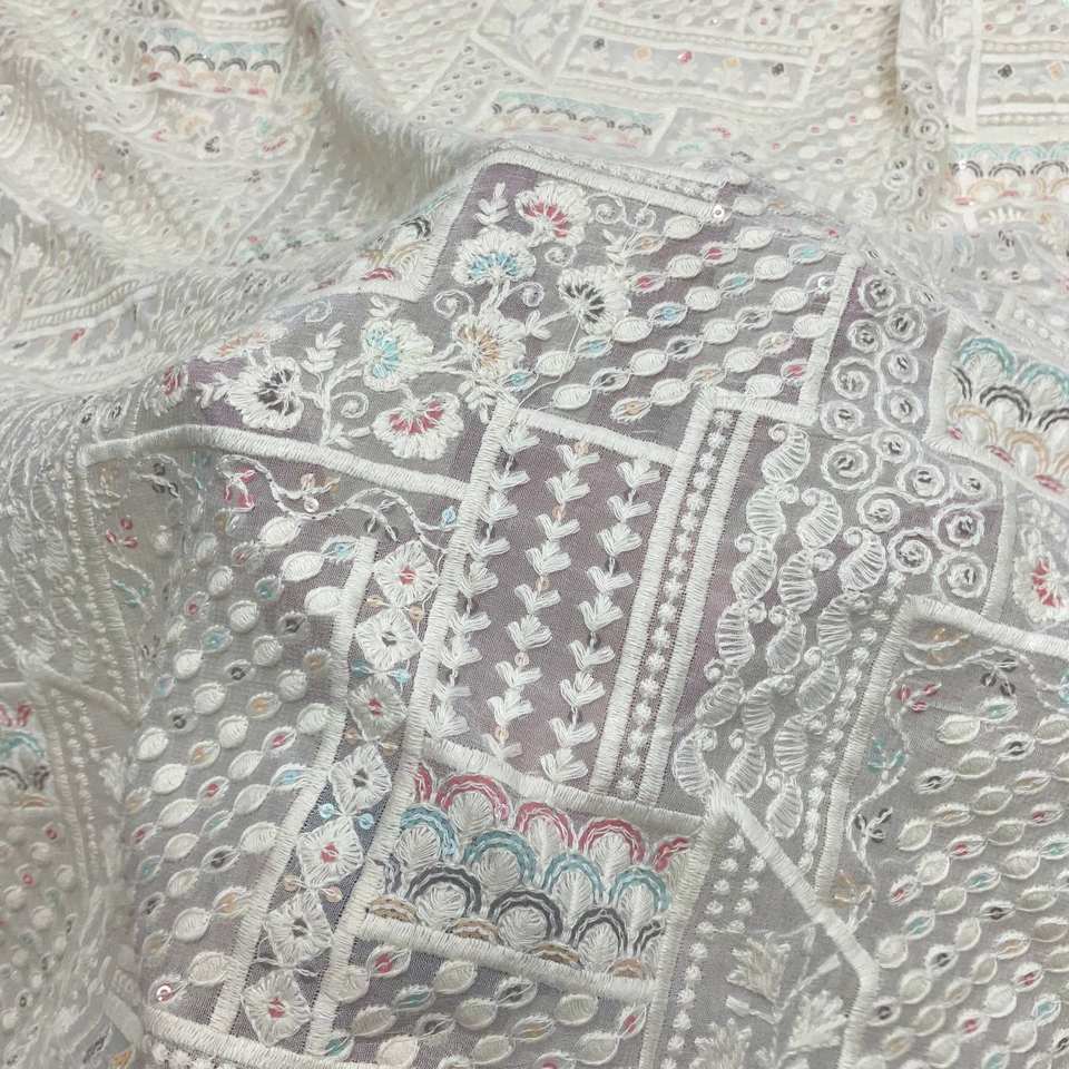 Léger 100% viscose Georgette tissu complexe brodé Style uni garçons et filles Kurta Koti Sherwani robes