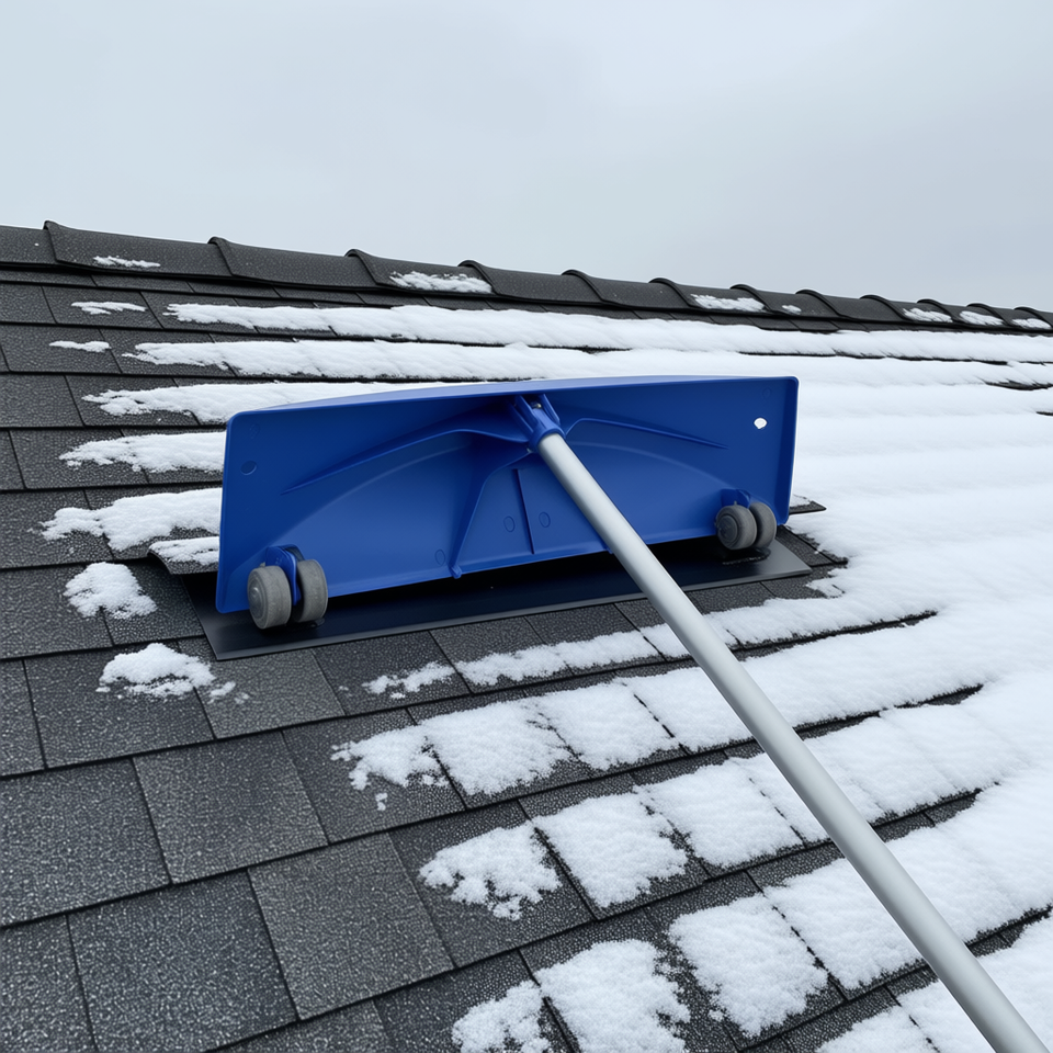 Râteau de toit léger en plastique PP de 24 pouces, lame réglable de 3,8 à 18,2 pieds avec roues pour le déneigement des toits