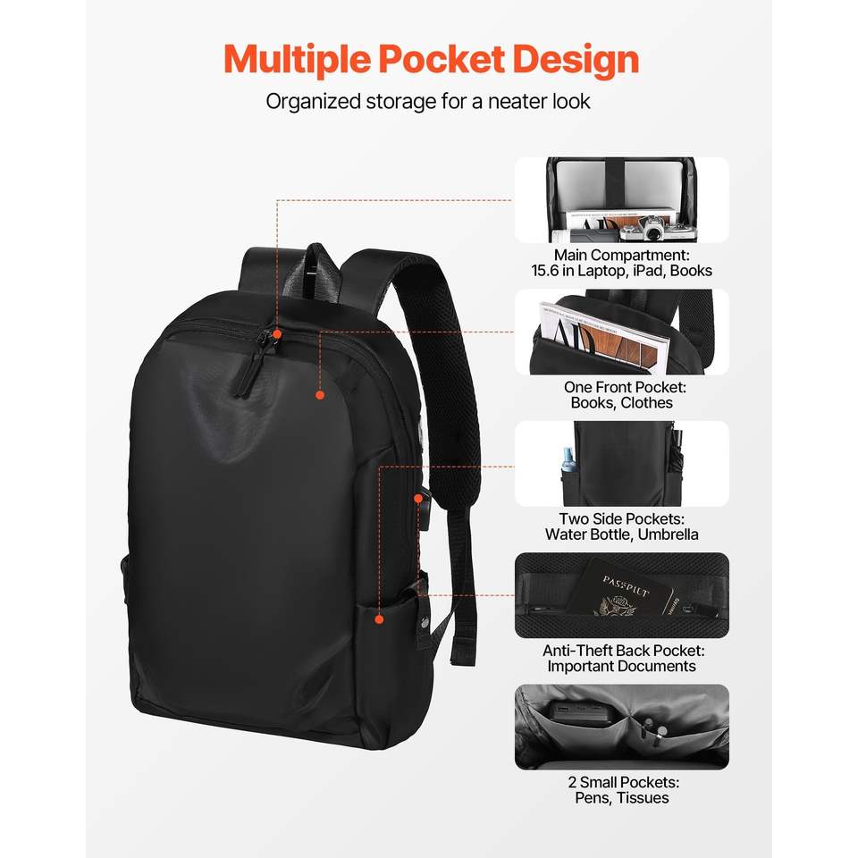 Sac à dos léger pour ordinateur portable de randonnée 26L pour une couleur noire de 15.6 pouces