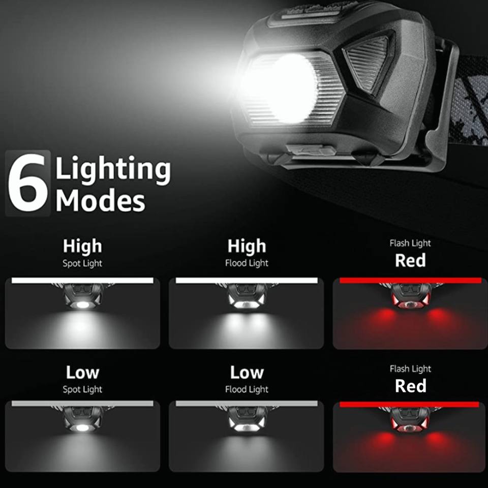 Lampe frontale légère et réglable, charge rapide par USB, plusieurs fonctions d'éclairage, adaptée aux pannes de courant