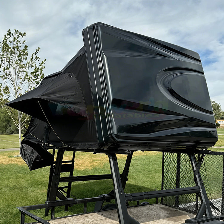 Tente de toit rigide en aluminium léger pour pick-up 4x4, pliable, pour 2 à 3 personnes, moderne, noire, installation facile