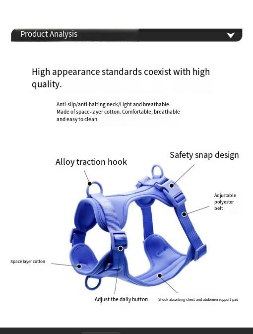 Harnais de poitrine léger anti-évasion en polyester et coton avec rivets, personnalisable et réglable pour chiens et chats - Utilisation sportive en extérieur