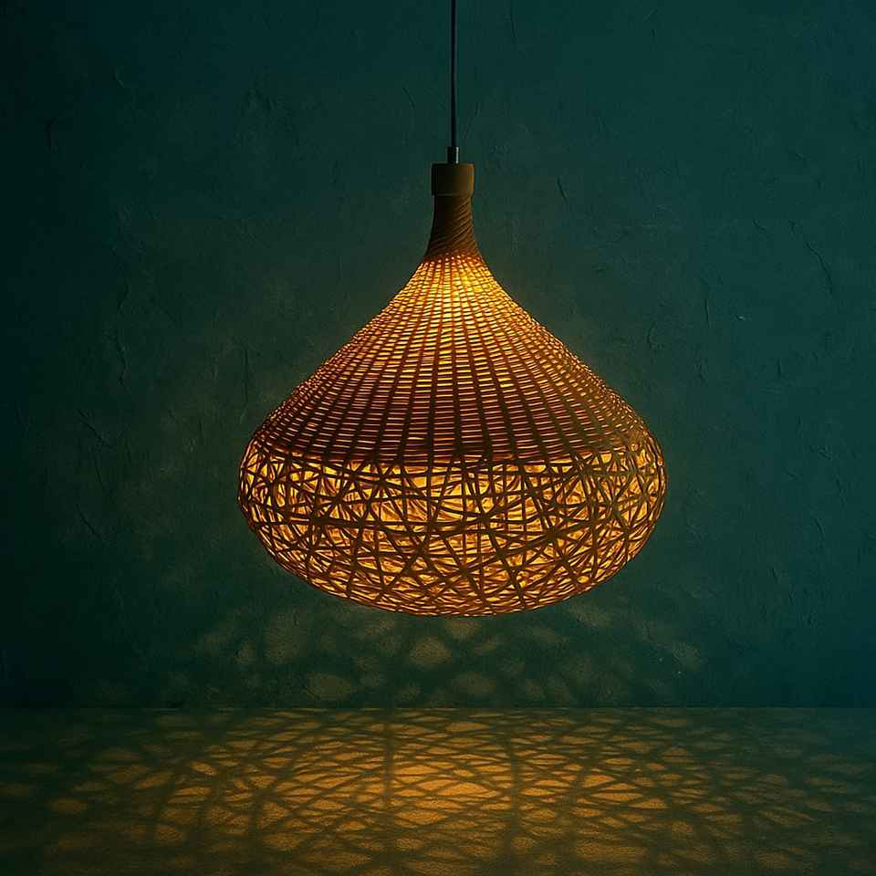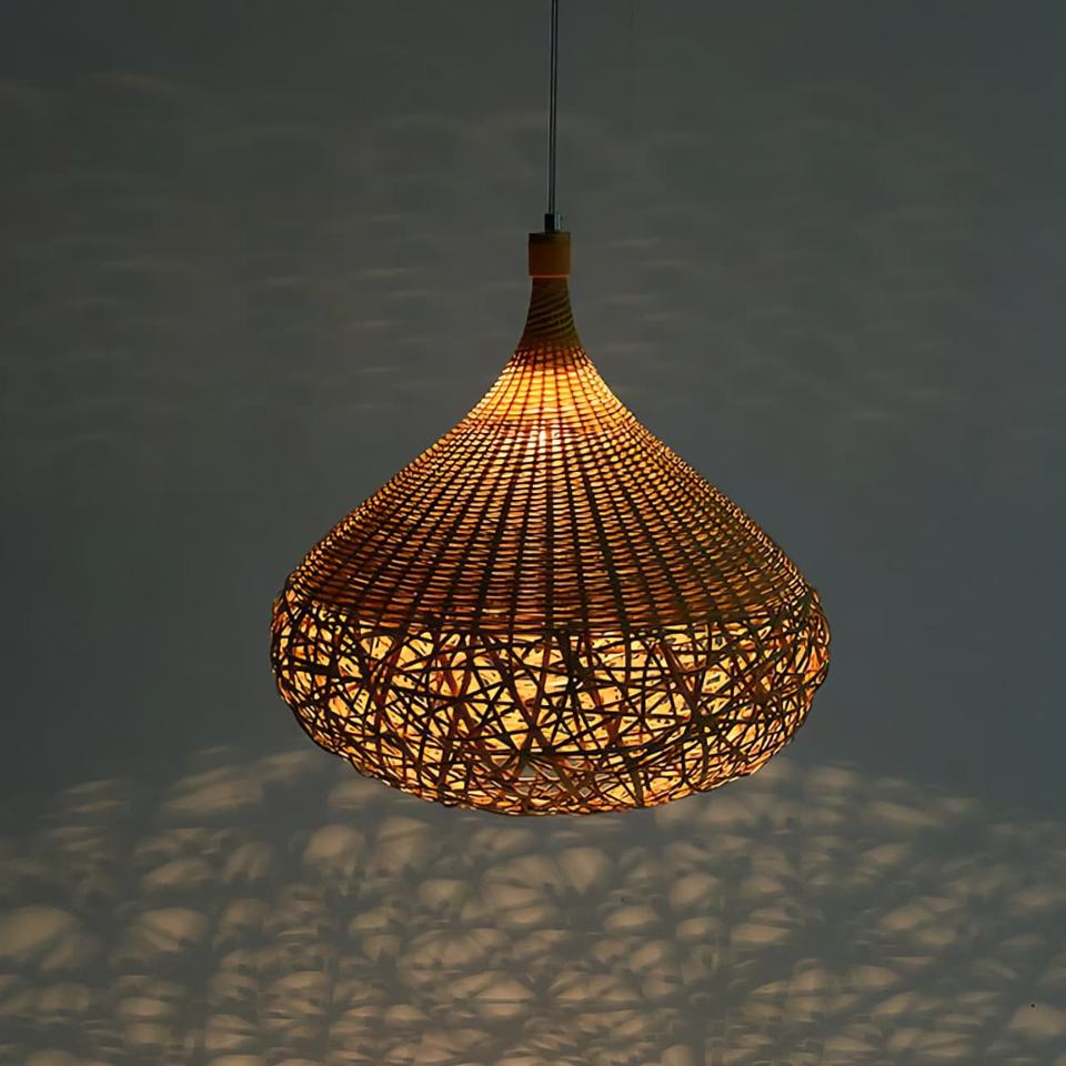 Lampe à suspension légère en coquille de bambou-Lumière moderne naturelle pour manger ou lire Nook