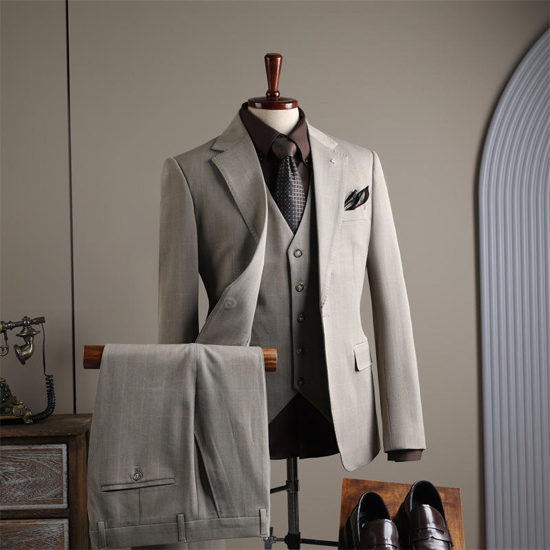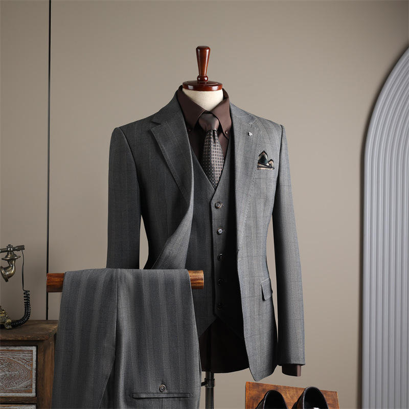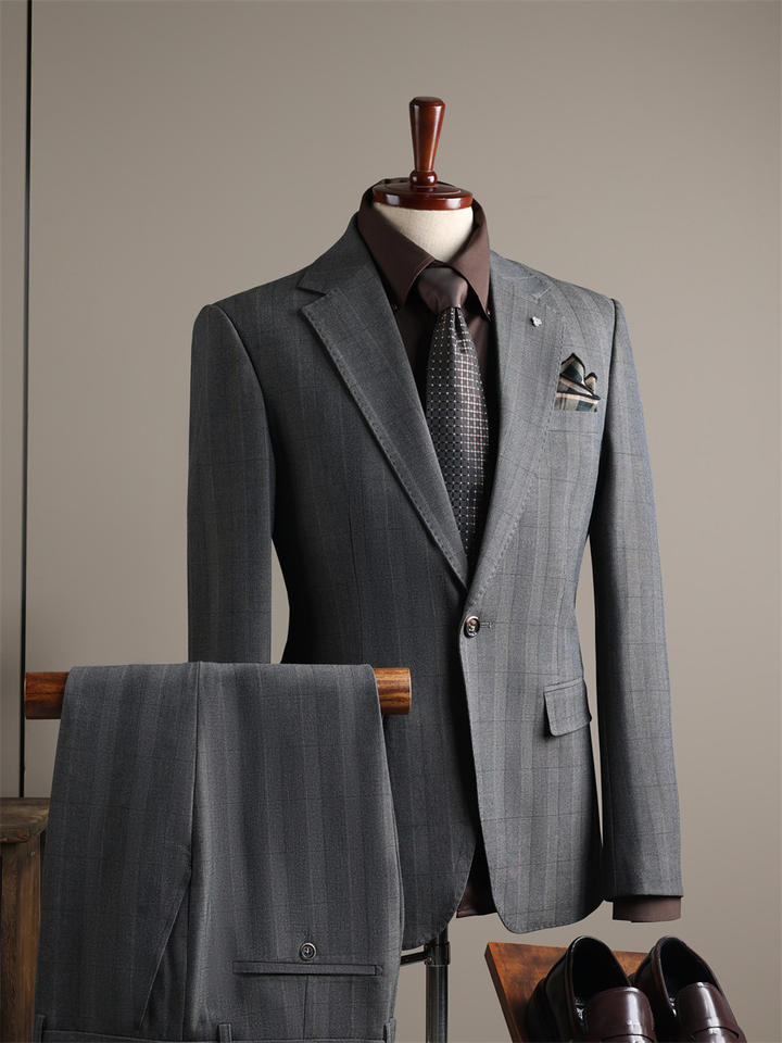 Costume Classique Homme Léger, Respirant et Infroissable en Laine Peignée, Gris Polyvalent, Simple Boutonnage, Coupe Droite, Toutes Saisons