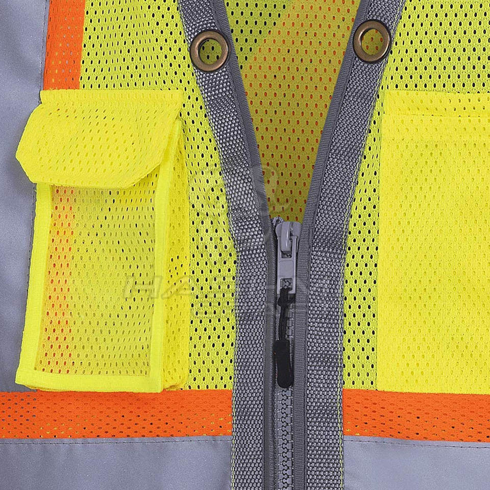 Gilet de sécurité léger et respirant avec plusieurs poches pour le travail industriel, l'entrepôt et le contrôle du trafic