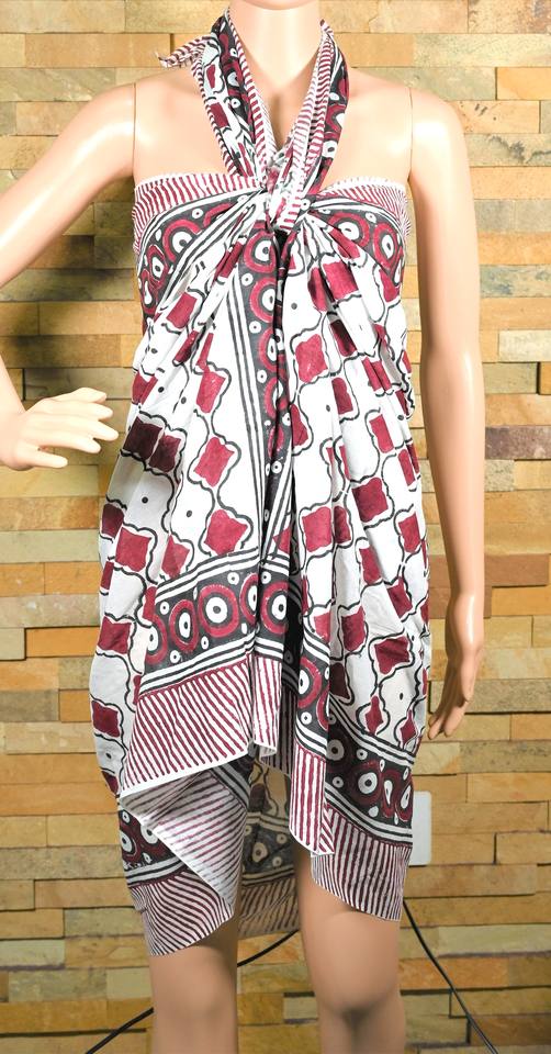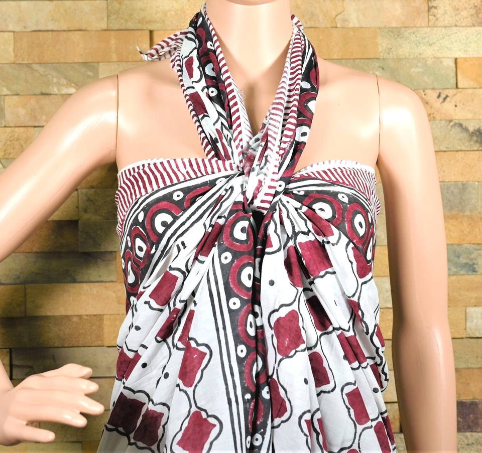 Sarong léger en coton imprimé à la main, paréo indien fait main, jupe de plage pour femme