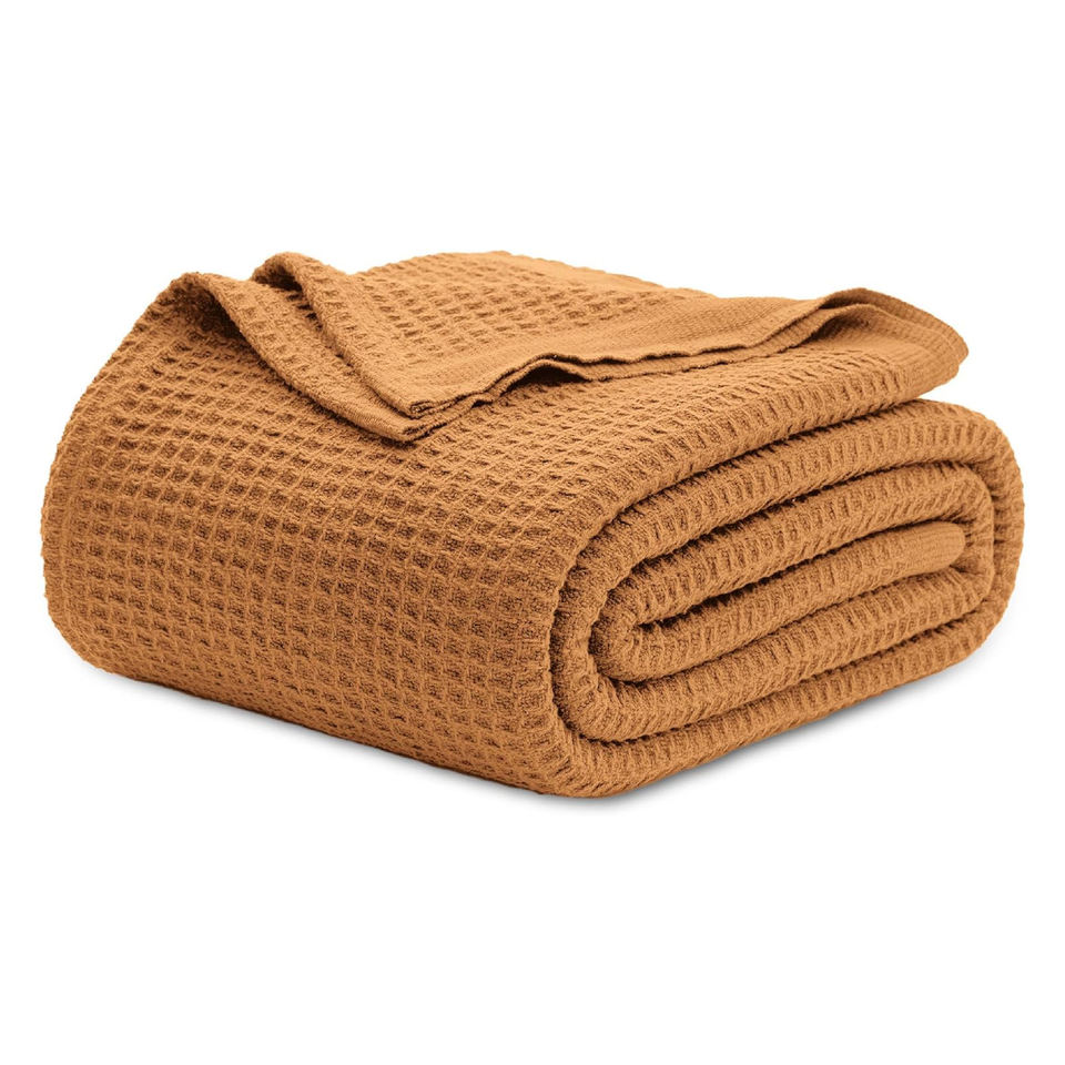 Jeté en coton tissé gaufré léger toutes saisons Couverture écologique douce et respirante pour la peau Motif imprimé Plaine d'été