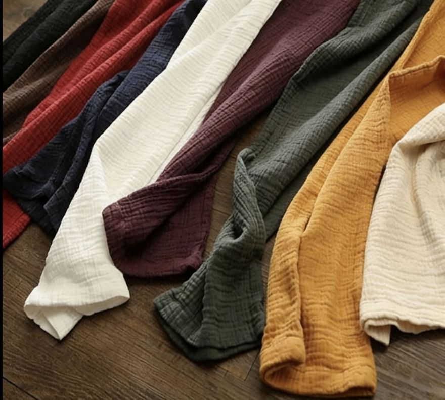 Tissu en gaze froissée double couche léger en coton pour vêtements toutes saisons
