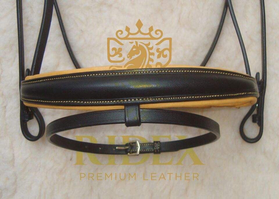 Lightweight Dressage Leather Bridle-Yellow Piping Brow band Padded Nose-band with Flash Horse Riding Accessory From India...