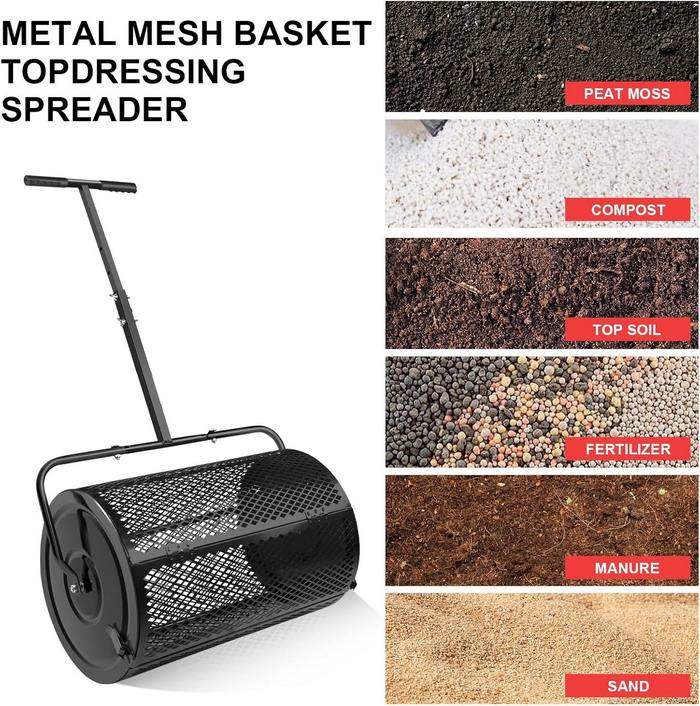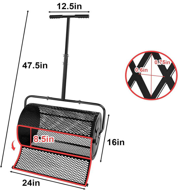 Engrais en maille métallique durable léger et outil de jardinage portable personnalisable pour rouleau de semoir