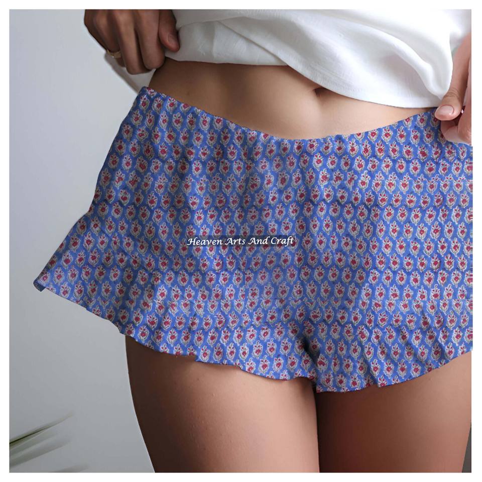 Product name:100% Cotton Hand Block Printed Ruffle Shorts
