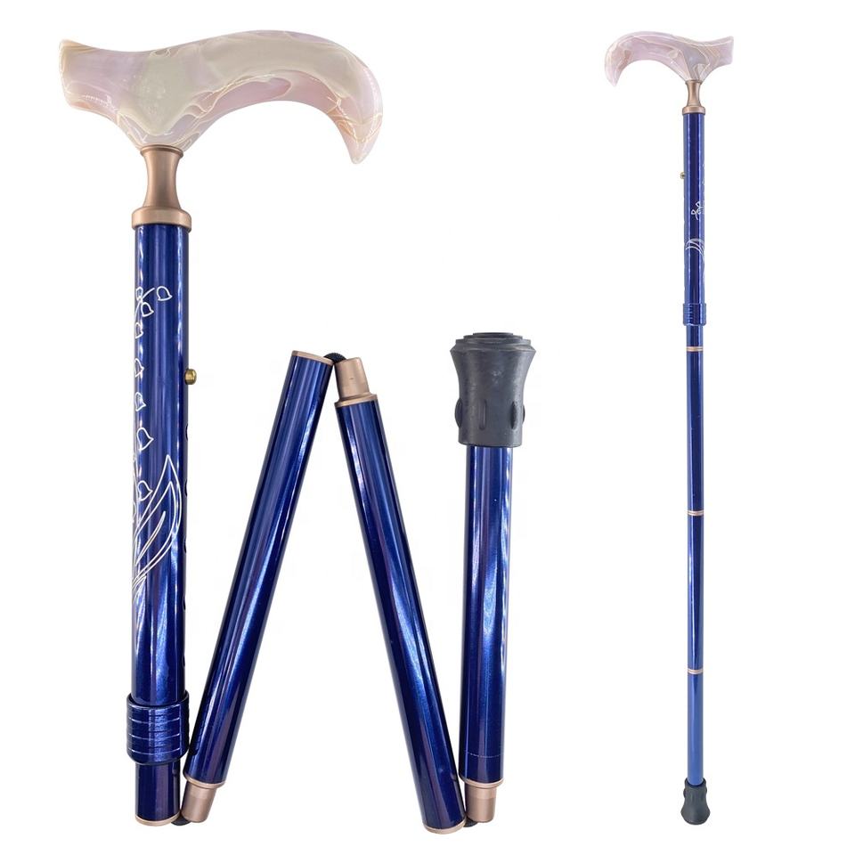 Canne de marche légère en aluminium pliable à cinq sections avec poignée en acrylique
