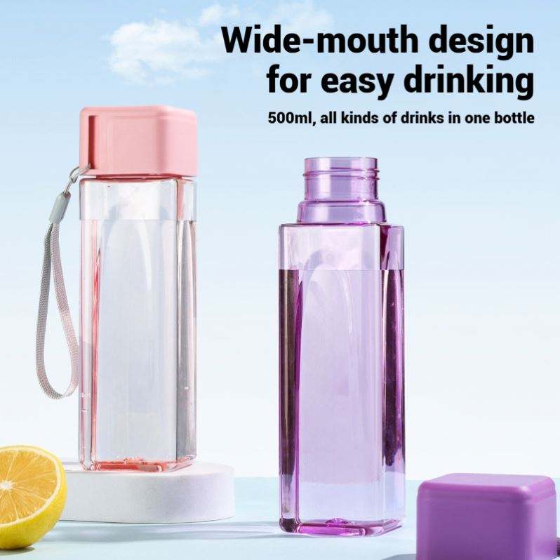 Bouteille d'eau légère et pratique de style sportif avec logo personnalisé en plastique de forme carrée pour les enfants à l'école