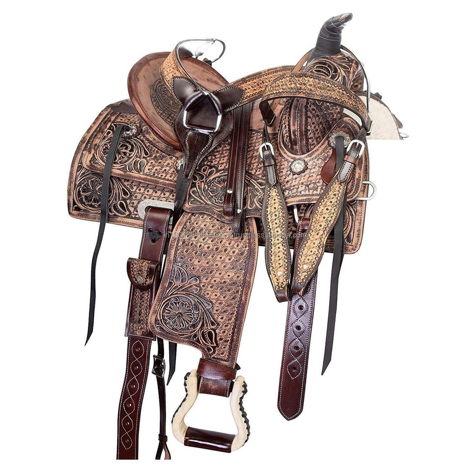 Selle d'équitation légère en cuir véritable américain Selle Western Roping avec Tack Set Selle Roping faite à la main en vrac