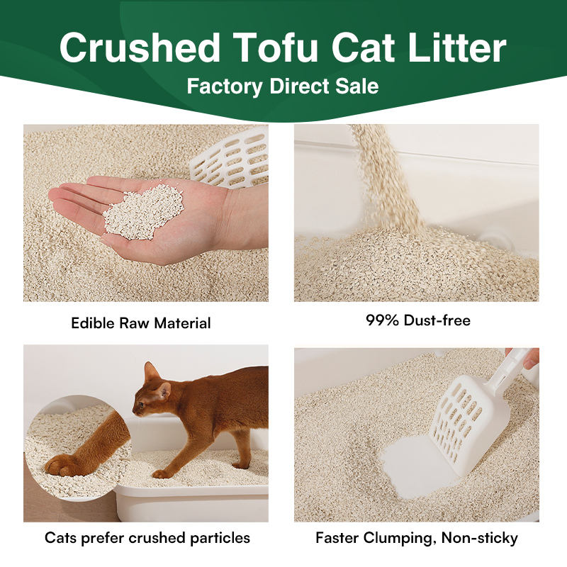 Litière pour chat au tofu écrasé à action instantanée légère 24/7 contrôle des odeurs litière à faible poussière compatibilité multi-chat nettoyage sans effort