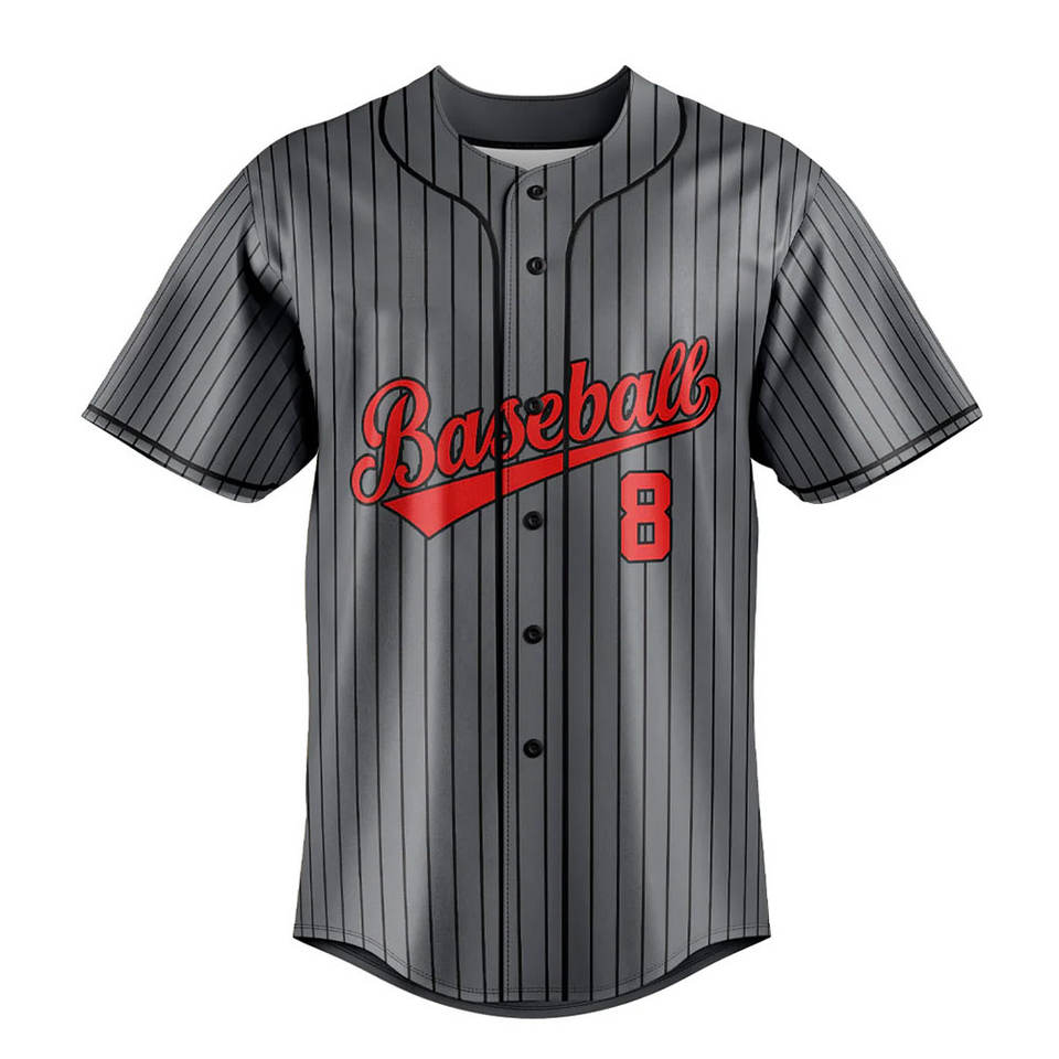 Uniforme d'équipe de baseball léger pour hommes Gris avec des bandes noires Conception personnalisée Uniforme de softball