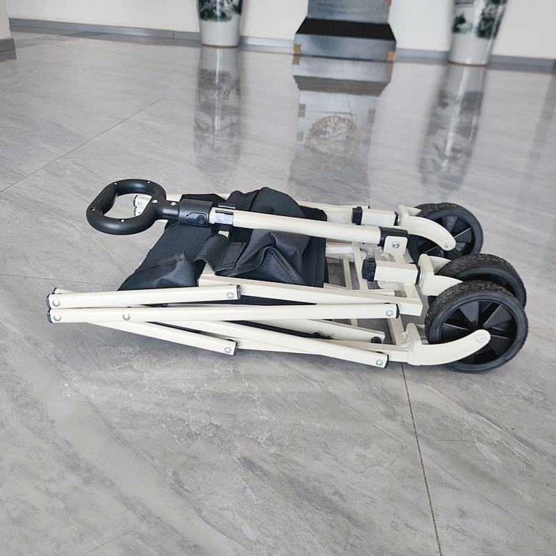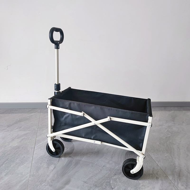 Chariot pliable à quatre roues en acier léger pour l'extérieur, chariot de camping, chariot de plage pour enfants, utilisation pour les courses, poussée pliable