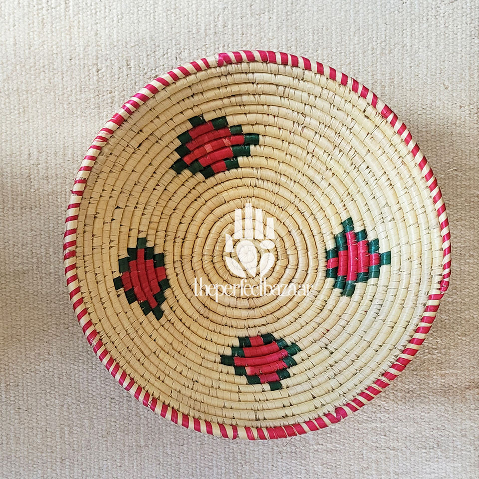 Panier ouvert léger en herbe de Moonj naturelle - Écologique, durable, mini, rond, multifonctionnel, polyvalent