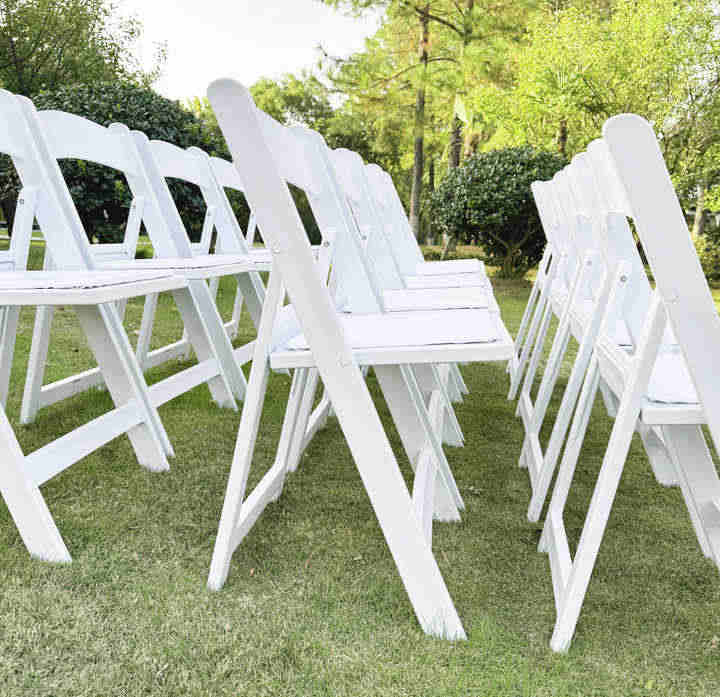 Chaises pliables légères de location pour extérieur, chaise pliante en résine blanche en plastique pour mariage et Wimbledon, idéale pour les événements.