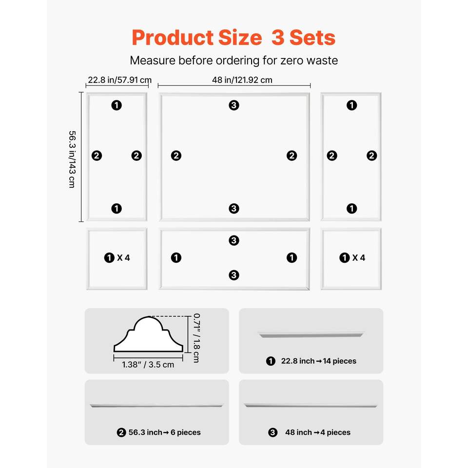 Moulures murales en polystyrène légères et peignables, lot de 3, installation facile, kit de panneaux de lambris décoratifs intérieurs, panneaux muraux